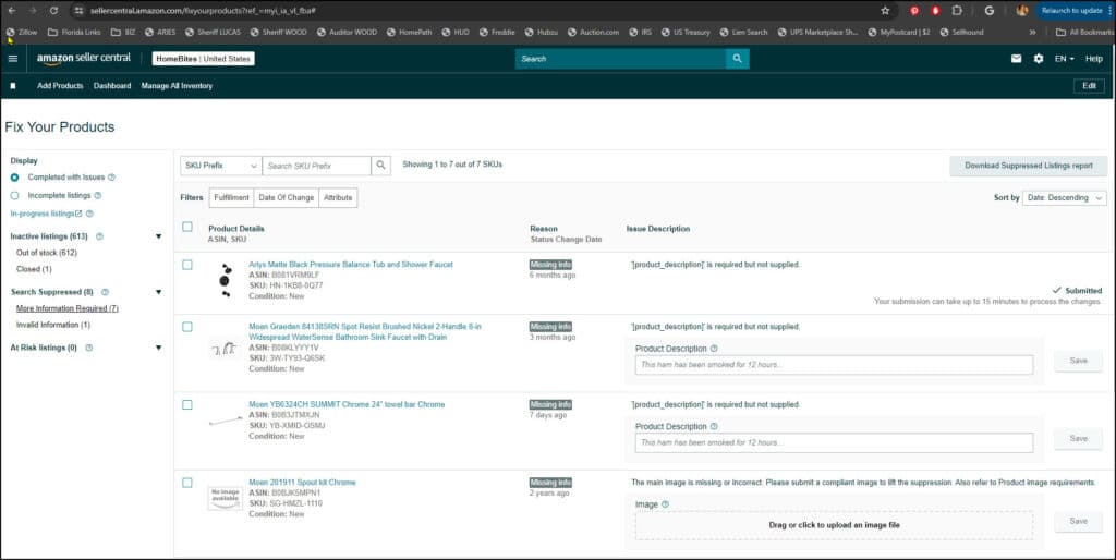 4. Search for the product listing you need to correct.